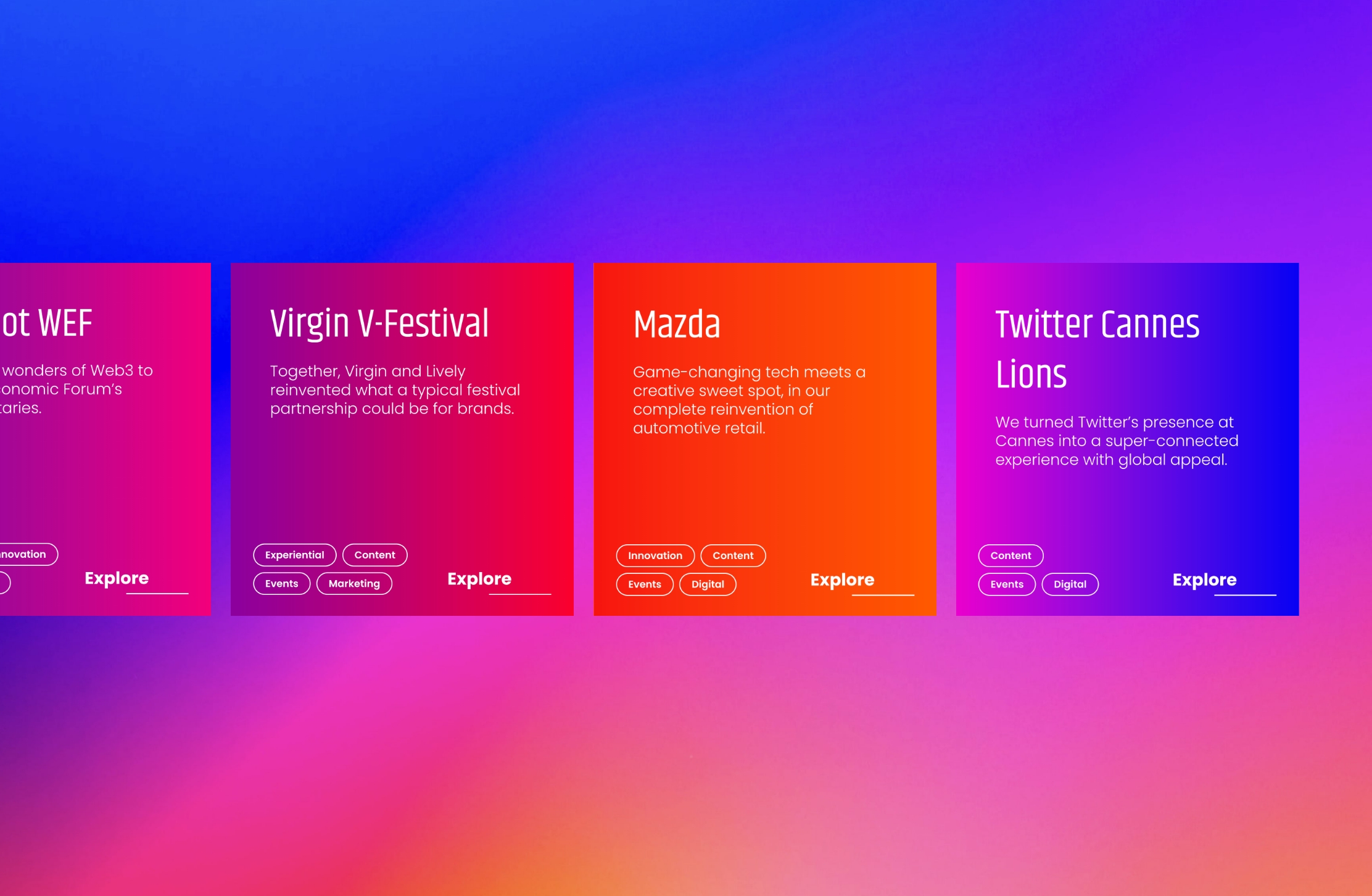 Lively was founded by Mark Mitchell and Mike White at a time when content and events were seen as two very separate marketing disciplines. They knew that combining the two resulted in bigger, more immersive experiences for brands and audiences. It was a conviction that led to some truly groundbreaking long term partnerships; like V Festival, with whom they rewrote the playbook for festival sponsorship, and Twitter, which saw the brand break out of its 140-character limit and come alive in the “real” world. Fast forward to 2023 and with competition between marketing agencies at its peak, Lively needed to stay ahead.